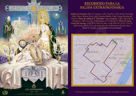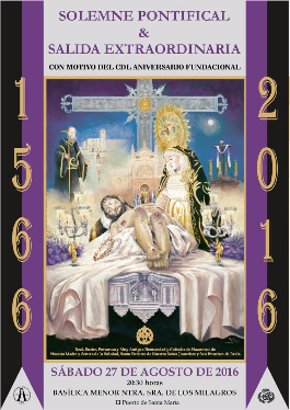 Royal, Illustrious, Fervent and Very Old Brotherhood and Brotherhood of Nazarenes of Our Mother and Lady of Solitude, Entombment of Our Lord Jesus Christ and San Francisco de Paula, located in the Basilica of Our Lady of the Crowned Milagros, held this year its 450th anniversary, which closes on August 28, 2016, coinciding with this anniversary Foundation in 1566.