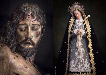 The step is procesiona work of the Sevillian goldsmith Angel Gabella, chiseled and embossed in silver, which was donated by the Honorary Brother of the Brotherhood, Don Jose Luis Osborne Vázquez. On the same, guarded by four candelabra windshields donated by a sister widow in 1896, gather in a single print Our Lord Jesus Christ recumbent and Our Mother and Lady of Solitude, as a "pity". An evocative installation, as the image of Our Lord was formerly a descent, which brings together in one step the three procession every Good Friday, because after they closed the mystery the Holy Cross.